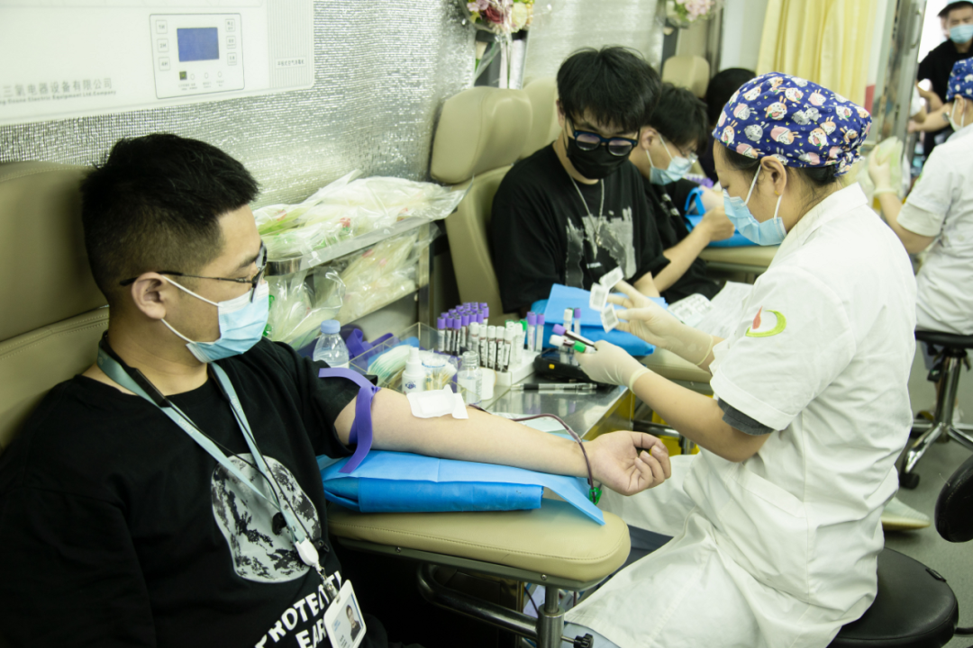 活動現場秩序井然,公司總部和廠區(qū)兩地的獻血活動有條不紊地進行。現場工作人員耐心地答疑解惑,詳細說明獻血注意事項。獻血者全程佩戴口罩,嚴格遵守疫情防控要求,按照獻血流程檢測體溫、化驗血型、測量血壓……公司綜合部為參加獻血的同事們貼心準備了營養(yǎng)早餐,用心為獻血活動的順利開展保駕護航。