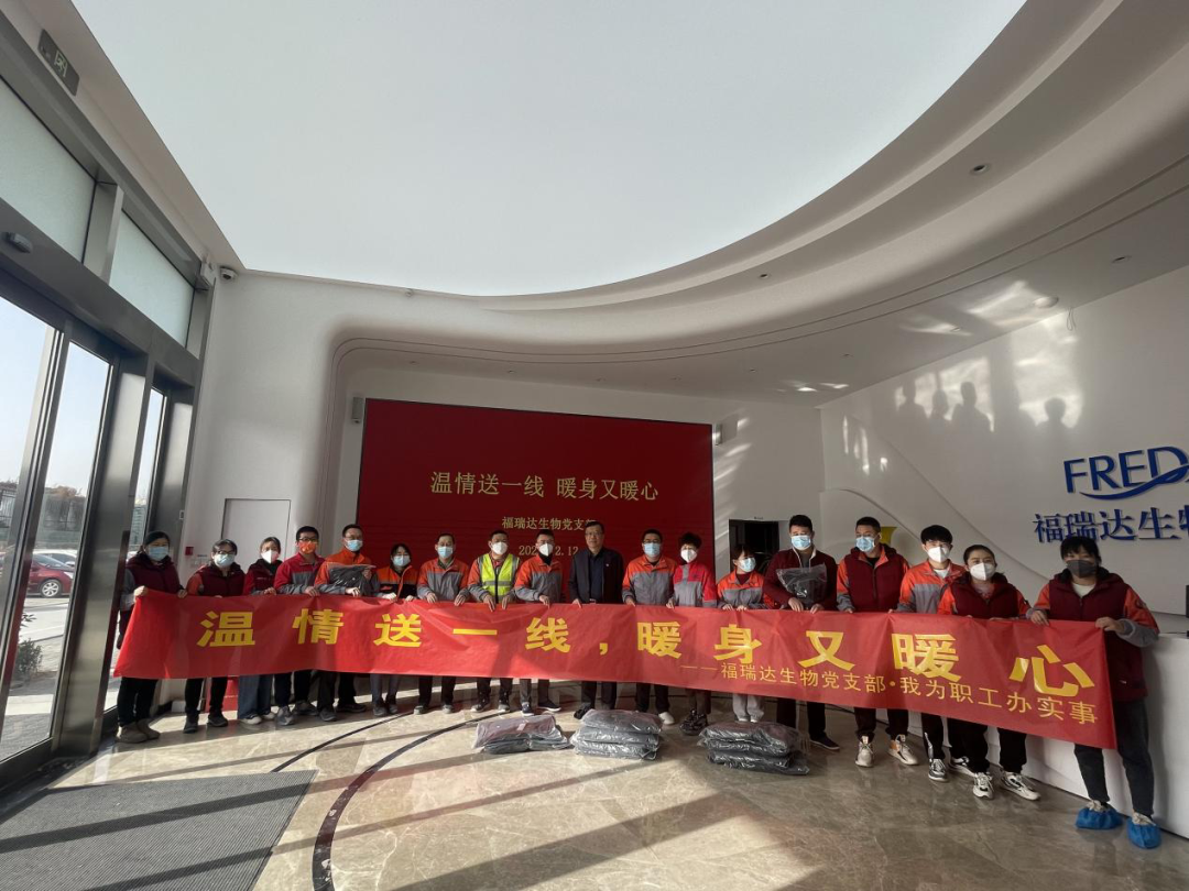 近日寒潮來襲,濟(jì)南氣溫急劇下降。為進(jìn)一步加強(qiáng)對一線員工的關(guān)心關(guān)愛,切實(shí)維護(hù)廣大員工的身心健康,確保一線員工溫暖過冬,12月12日,福瑞達(dá)生物股份黨支部開展“我為職工辦實(shí)事”活動,黨支部書記王偉帶領(lǐng)黨員代表為73位員工送上御寒沖鋒衣。