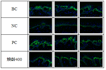 通過離體皮膚實驗發(fā)現(xiàn),【煥齡400】可以顯著提升Collagen XⅦ的表達,提升率為169.70%。穩(wěn)固基底網(wǎng)狀結(jié)構(gòu)和表皮的連接。